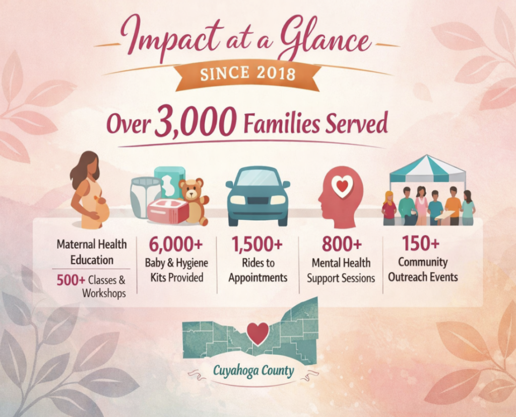 Since 2018, The Mommy And Me Initiative has served over 3,000 families across Cuyahoga County through holistic maternal and infant health support.